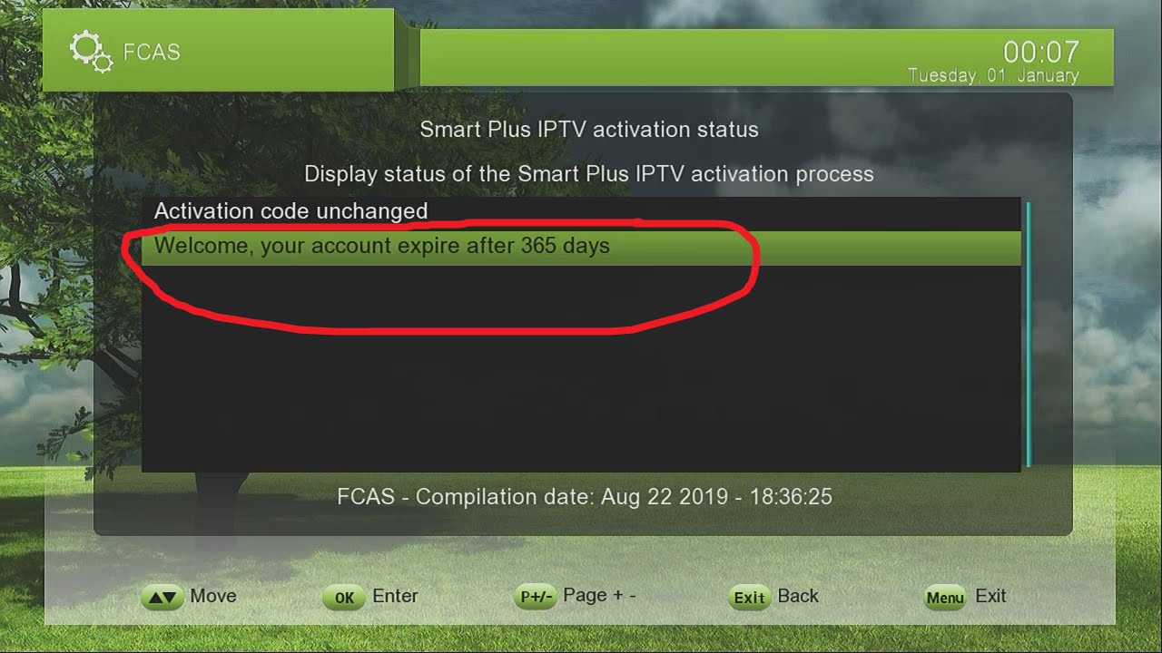Insérer le code d’activation, vérifier la durée » 365 jours » et profiter de vos chaînes préférées NB :